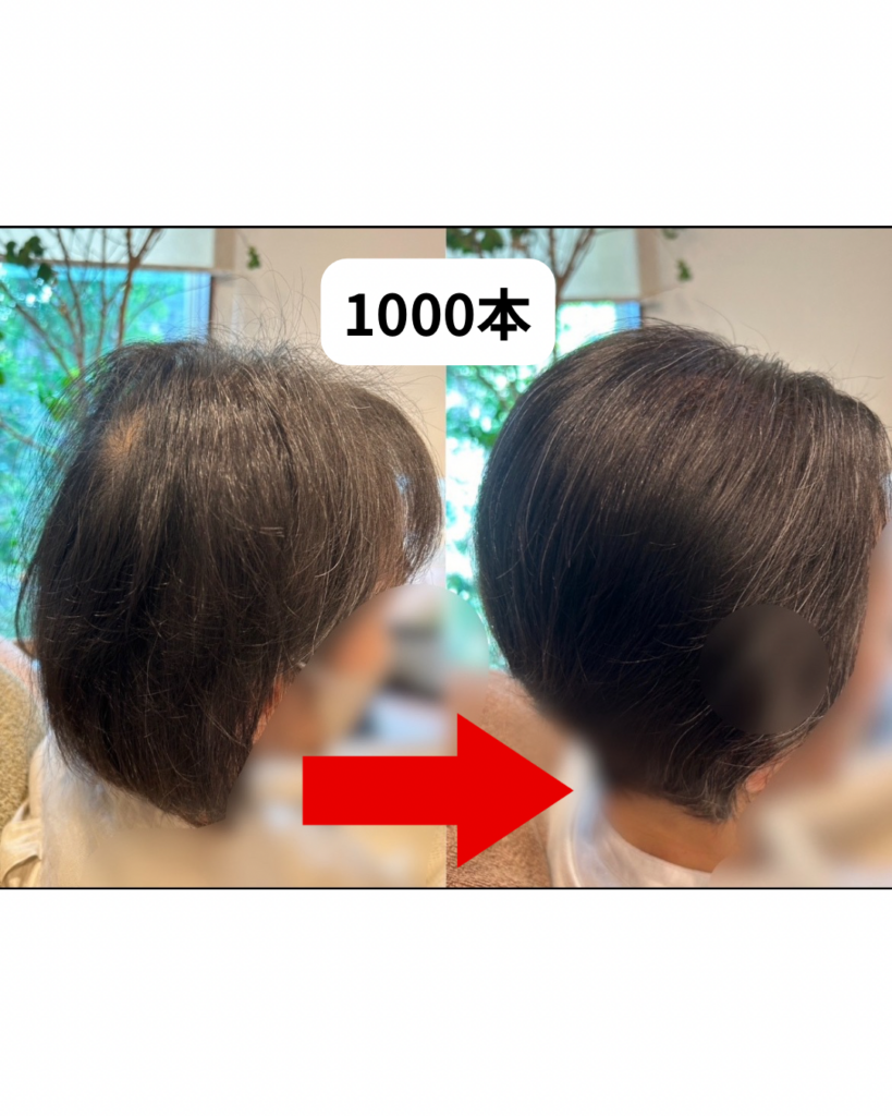とても素敵なサロンに出会いました。長年のホルモン治療にて頭頂部の薄毛に悩んでいました。丁寧なカウンセリングの後、素早い施術であっという間に髪のボリュームが復活し、ストレスからも解消されました。本当にありがとうございました。エクステ経験者なので、日頃のお手入れも問題なく過ごせます。本日も、4回目のメンテナンス日です。